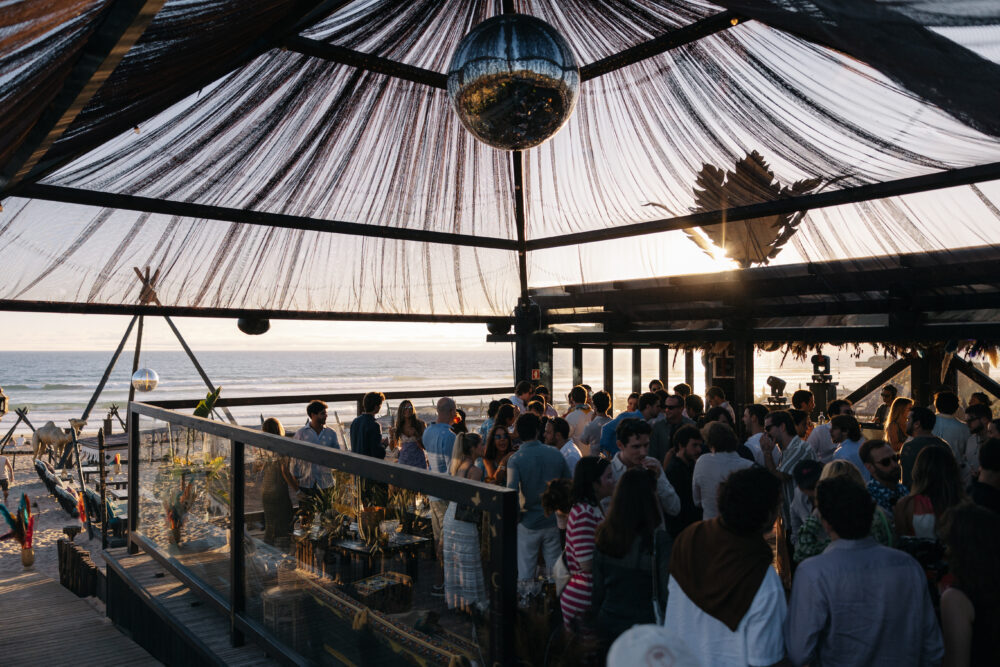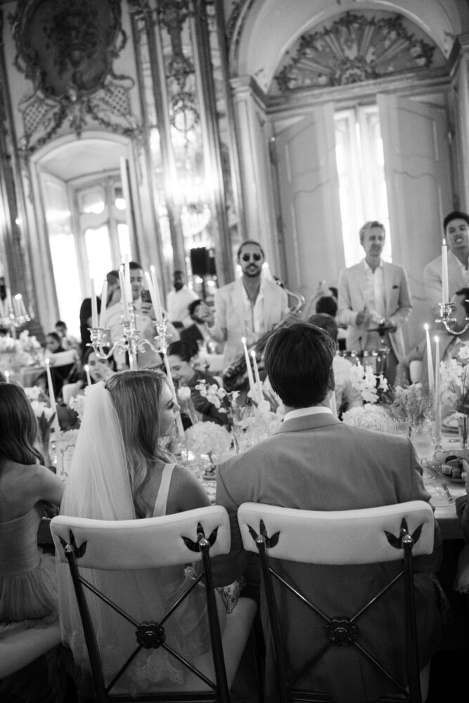Lara and Fabricio’s wedding celebration in Lisbon, Portugal blended European elegance, Brazilian warmth, and high-fashion modernity. After first meeting as teenagers in the South of France, life eventually brought them to Switzerland, where they built a shared life centered around travel, design, and wellness. After a quiet civil ceremony in 2023 they hosted a three-day destination wedding in Lisbon. With Portugal’s cultural ties to Brazil and a guest list spanning continents, the weekend showcased Lisbon’s range: a golden-hour beach party at Praia Irmão, an intimate penthouse welcome soirée, and a Rococo palace wedding at Palácio Nacional de Queluz reimagined as an open-air celebration under the stars.