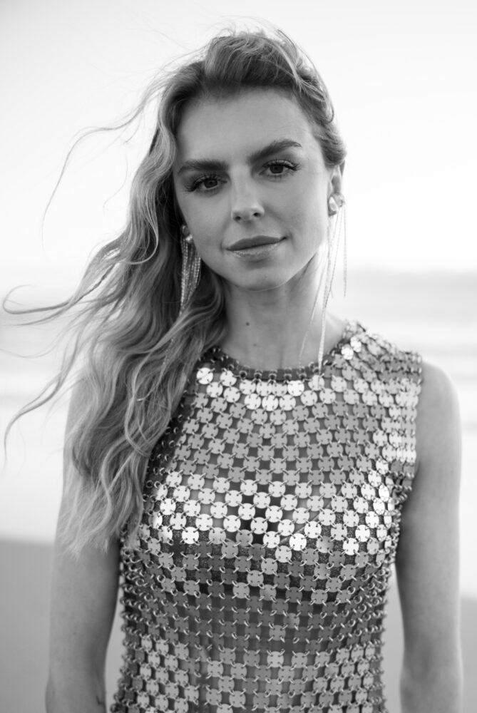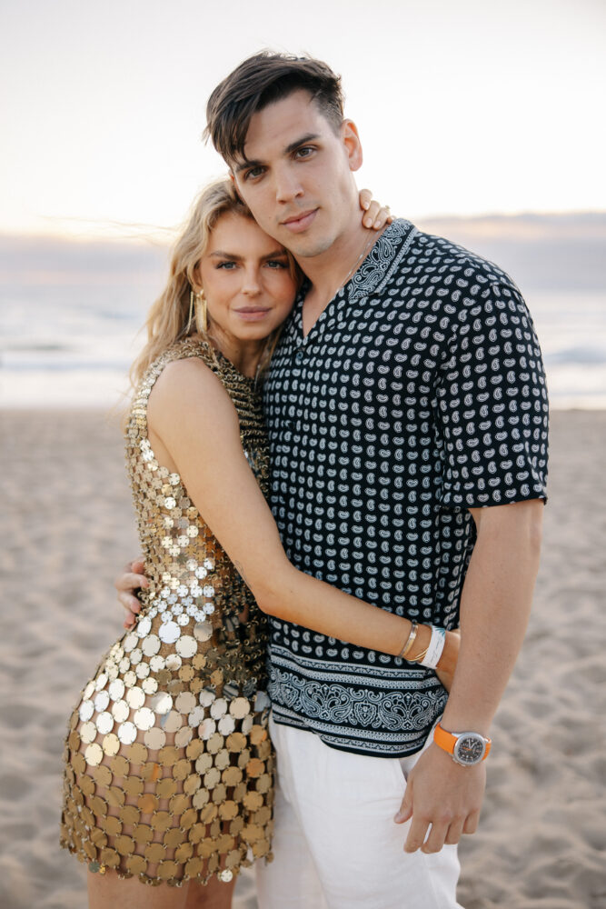 Lara’s fashion journey throughout the three-day celebration was a curated by a stylist Lula Romero as an expression of style and intention – from her sculptural metallic Rabanne mini dress and Ana Rocha & Apolinário statement earrings at the Praia Irmão beach party, to the timeless drama of her Vivienne Westwood gown with signature corsetry at the penthouse soirée, accented with jewelry she designed herself.