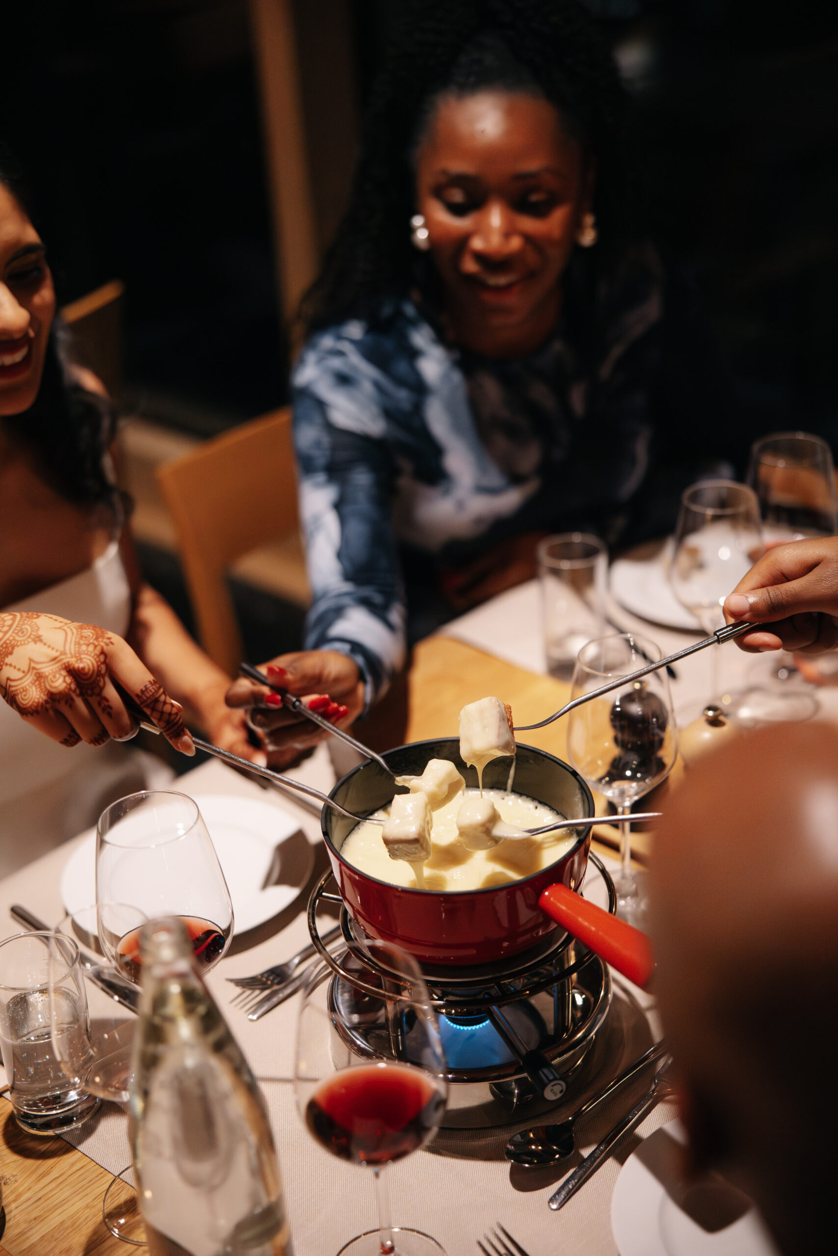A cozy Swiss-fondue welcome set a communal mood for 78 guests. The reception leaned into candlelight, natural textures, and alpine-inspired details. The night crescendoed with music and a packed dance floor.